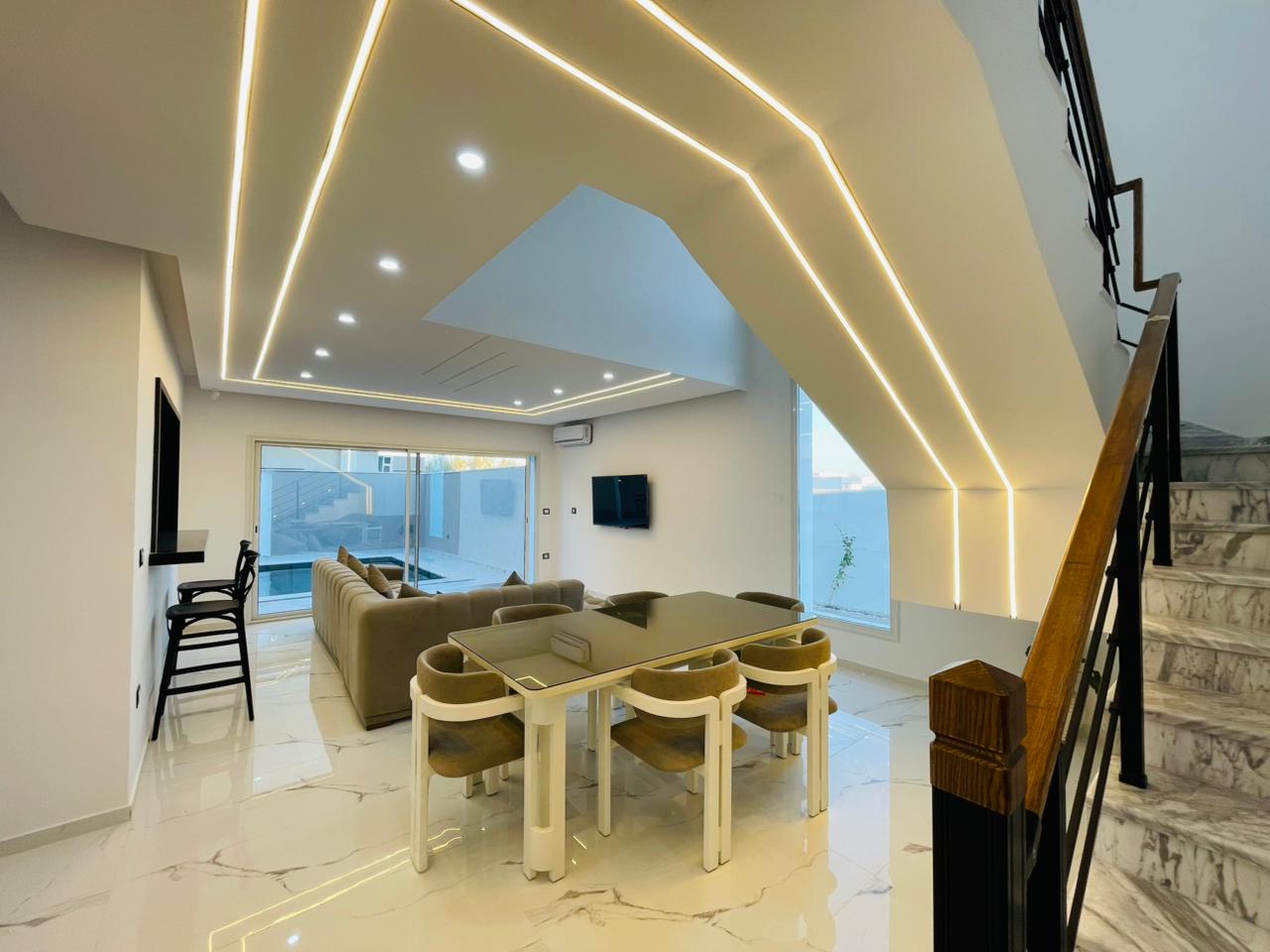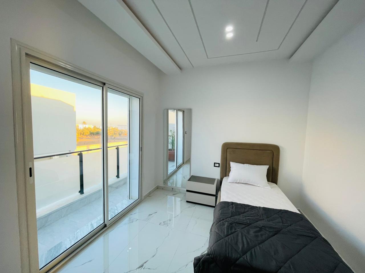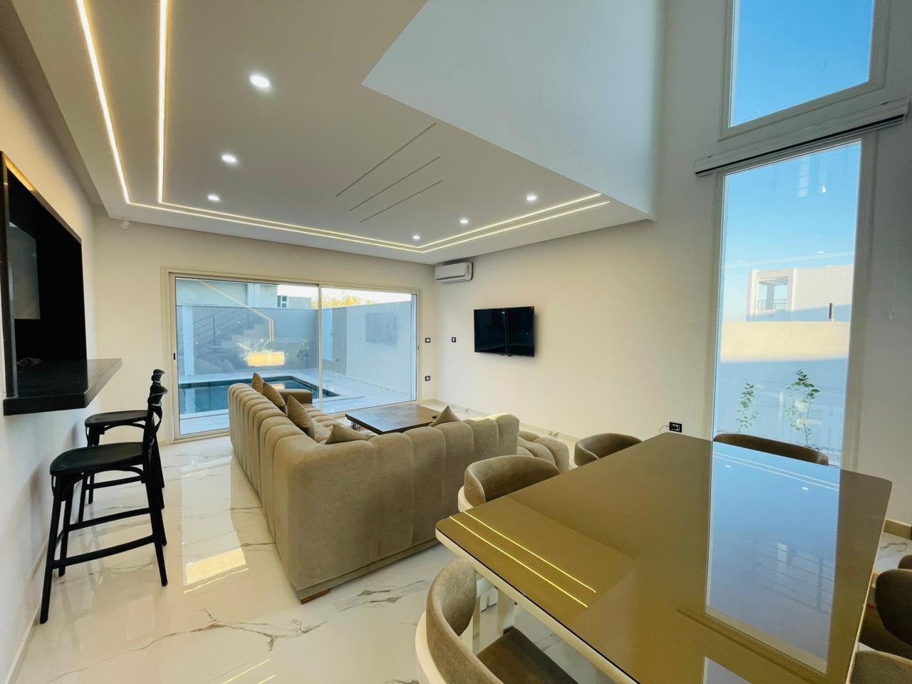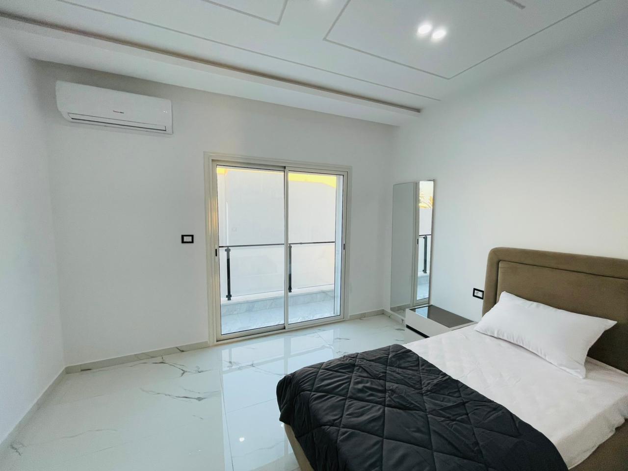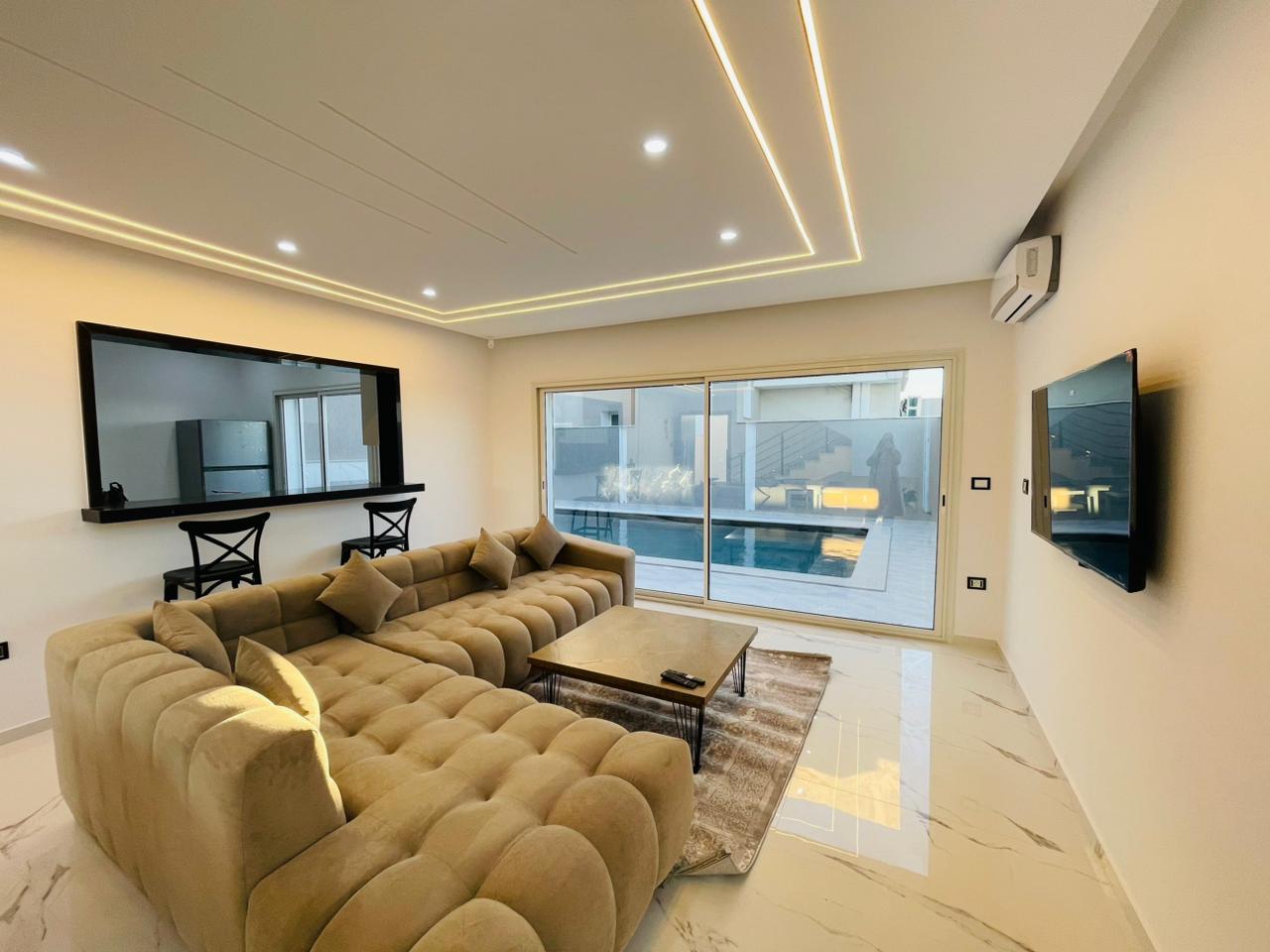 Si vous êtes à la recherche d’une villa confortable, neuve et moderne, l’agence immobilière Krayem vous propose cette excellente opportunité. 📌 Aujourd’hui, nous vous présentons Une villa aux caractéristiques exceptionnelles, avec une meuble moderne, située dans un quartier calme et sécurisé, proche de la mer, de la zone touristique et à proximité de toutes les commodités. 🏡 Villa S+4 Composée de deux étages: 🔹 Rez-de-chaussée : Une grande cuisine ouverte sur un salon spacieux donnant sur la piscine Une chambre parentale avec grand dressing Une salle de bain général 🔹 À l’étage : Trois chambres à coucher Une salle de bain 🔹 À l’extérieur : Une belle piscine Garage Barbecue