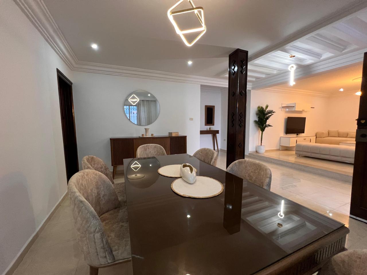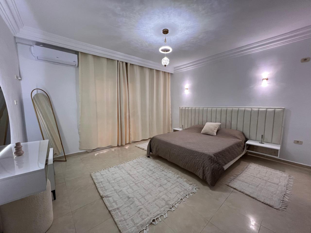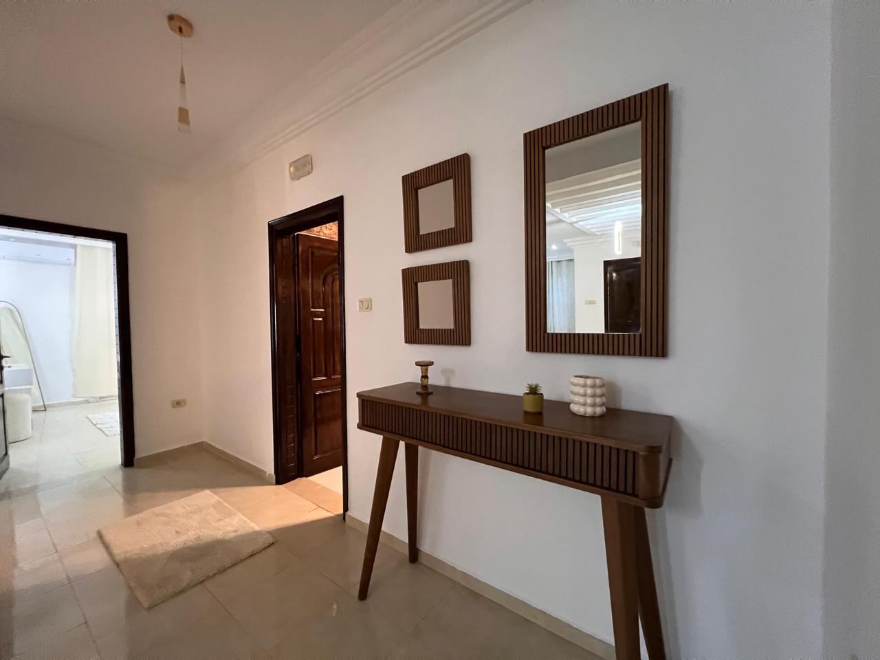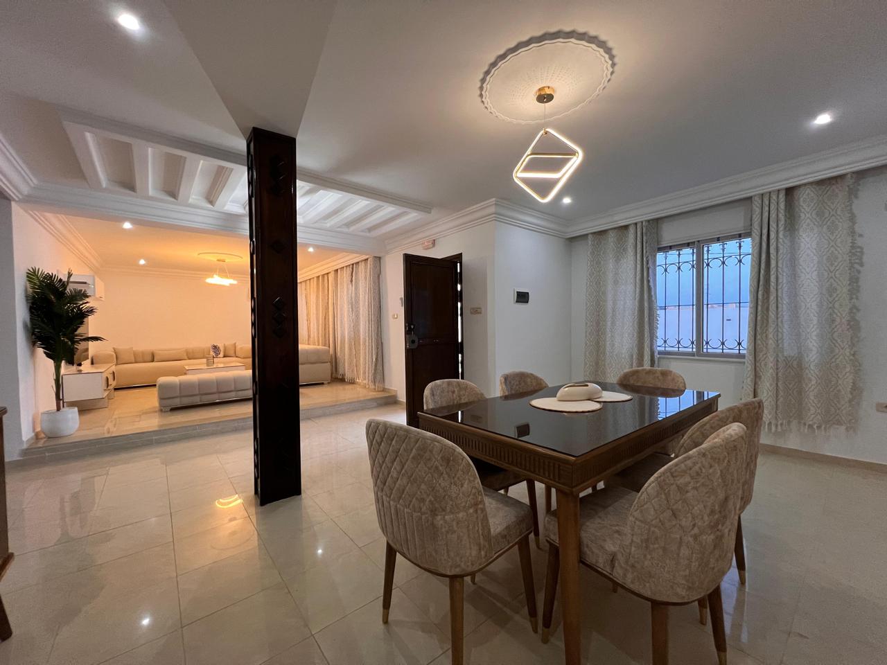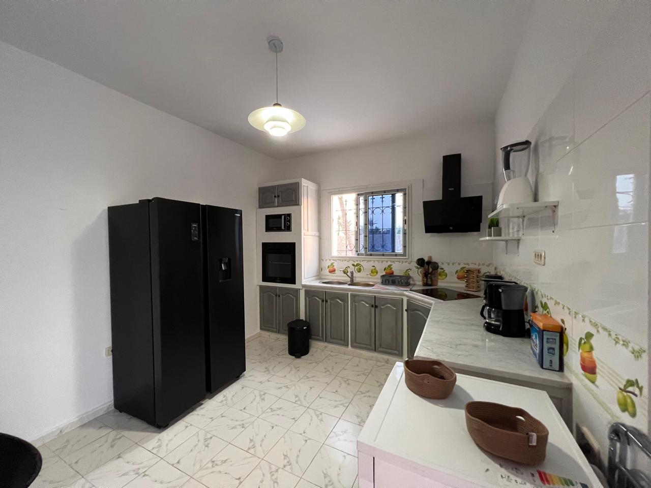 Agence Krayem immobilière vous propose une belle villa s+2 avec piscine meublée climatisée et bien équipée située dans un endroit calme et sécurisé à Tezdaine Djerba. Elle Se compose d'une salon ,salle a manger ,cuisine bien équipée et 2chambres a coucher avec une salle d'eau... *l'extérieur: piscine ,Terrace, jardin et parking..